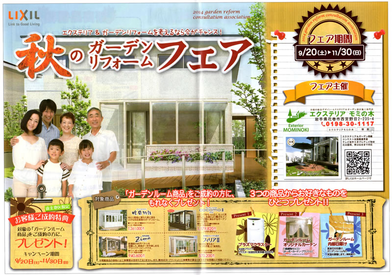 以下のいずれか一つをプレゼント致します。ちなみに金額的にオススメなのは内部日除けです。 ![]() 織り込みチラシを配布致しました。